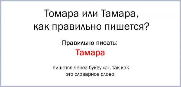 Следовательно, пишется правильно "Тамара". "Томара" - некорректный вариант.