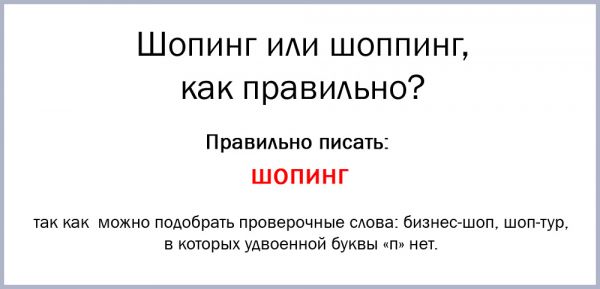 Таким образом, писать правильно "шопинг". "Шоппинг" считается неверное формой записи.