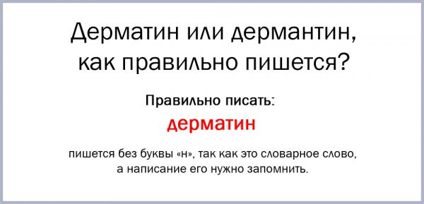 Таким образом, пишется правильно "дерматин". "Дермантин" - это ошибочный вариант записи.