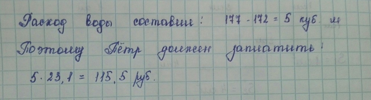 172 куб. м воды, а 1 июня - 177 куб. м воды. Какую сумму должен заплатить Пётр за холодную воду за май, если цена 1 куб. м холодной воды составляет 23 руб. 10 коп. Ответ выразите в рублях.