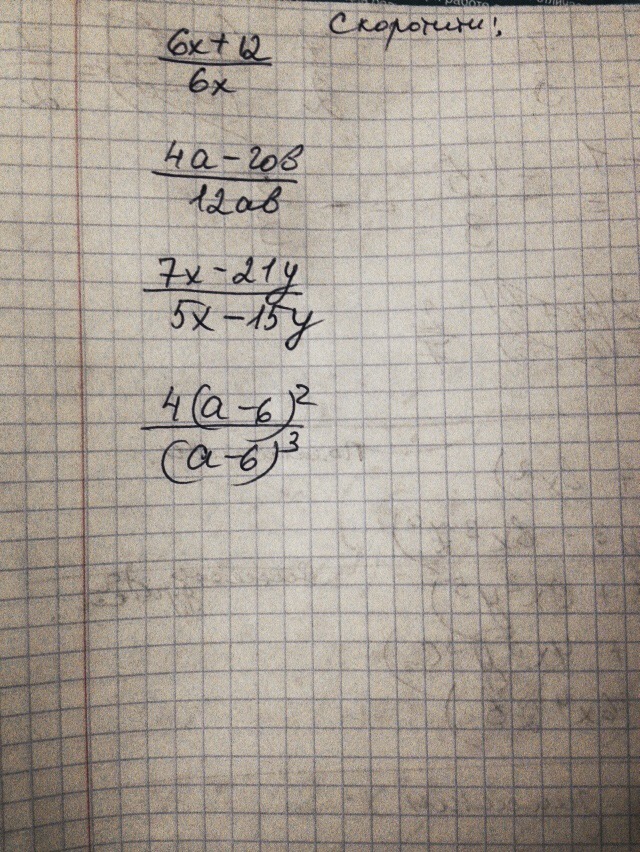 4) 4* (a-6)² / (a-6)³ = 4* (a-6)² / (a-6)*(a-6)² = 4 / (a-6)