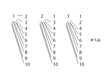Отрезок соединяет каждые две точки. Поэтому согласно условию имеем: