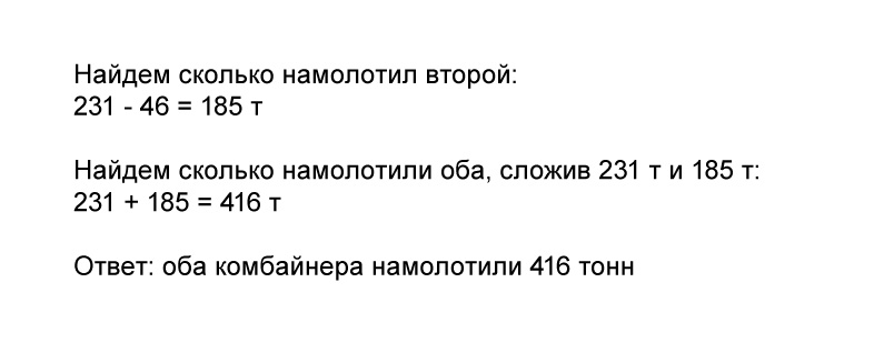 Найдем сколько намолотили оба, сложив 231 т и 185 т: