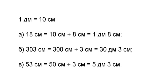 а) 18 см = 10 см + 8 см = 1 дм 8 см;