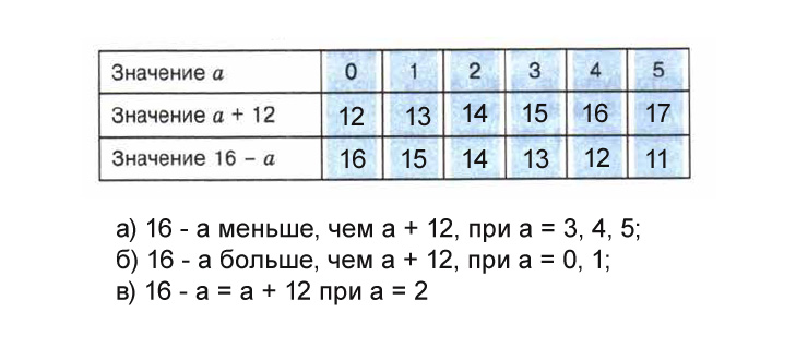 а) 16 - а меньше, чем а + 12, при a = 3, 4, 5;