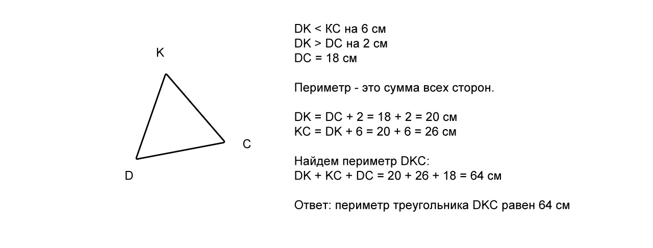 DK + KC + DC = 20 + 26 + 18 = 64 см