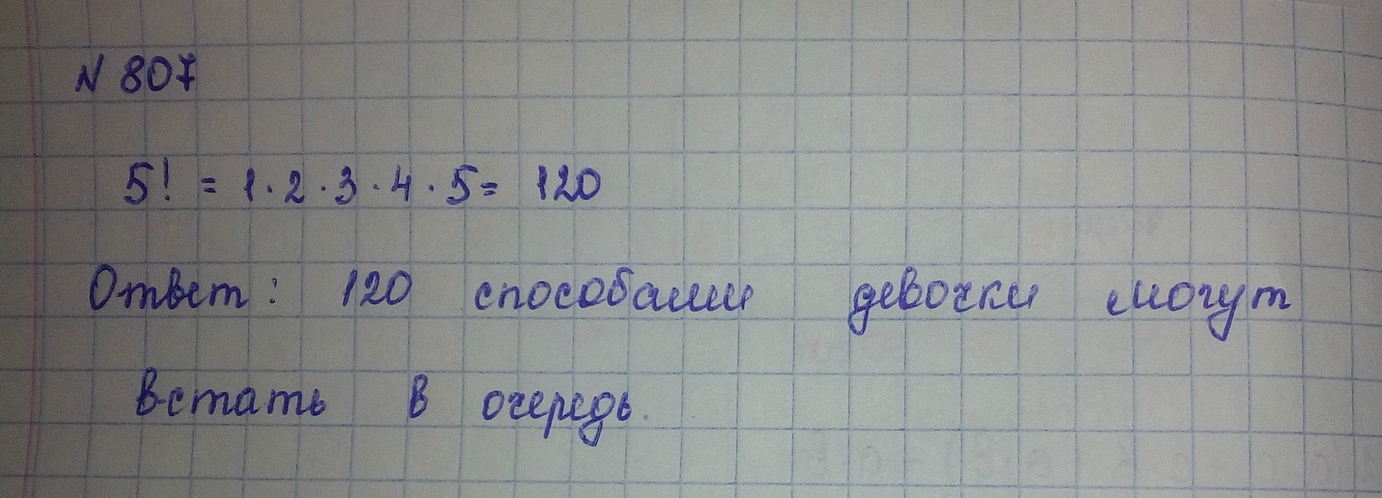 Первую девочку Лену мы можем поставить в очередь на любое из 5 мест, тогда для следующей девочки Светы останется уже 4 варианта мест, для Маши - 3, для Кати - 2, а Наташи лишь один вариант.