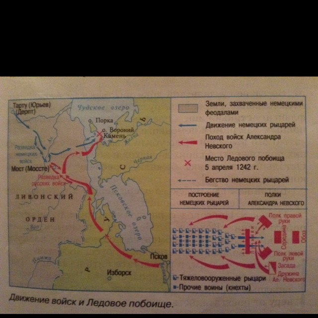 Пользуясь схемой, расскажите о Ледовом побоище.