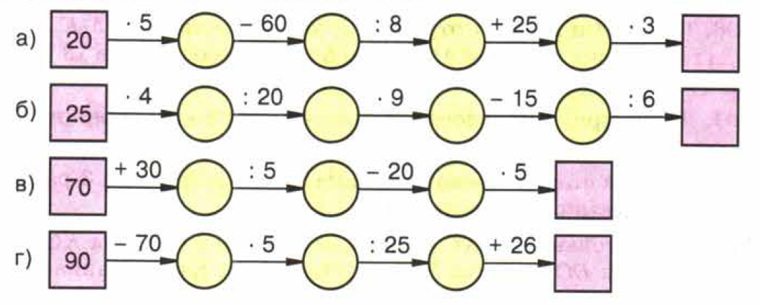 б) 25—>100—>5—>45—>30—>5
