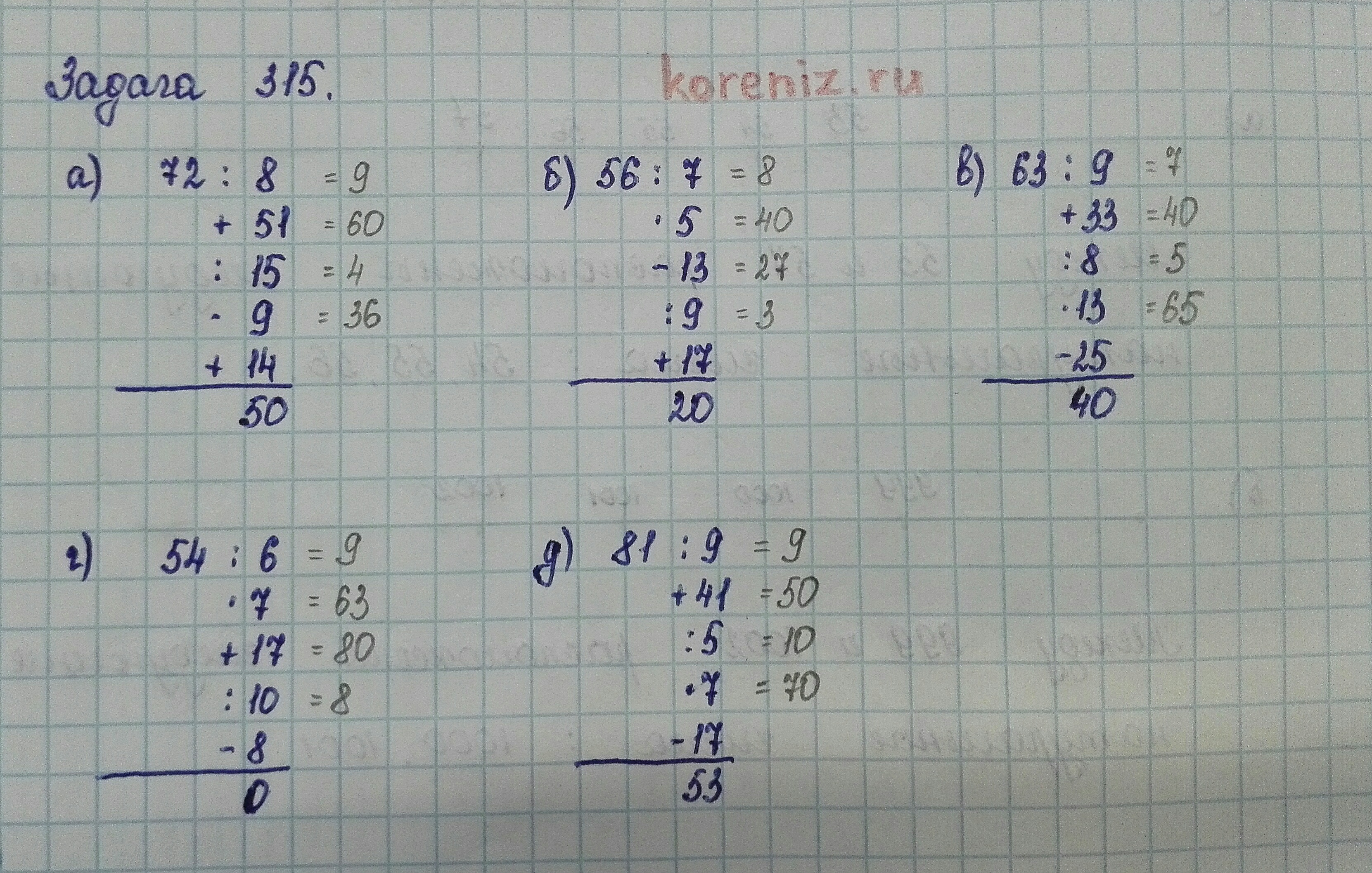razor Отличник 2017-08-08 18:44:12 Задача по математике 5 класс № 315 а) 50; б) 20; в) 40; г) 0; д) 53. 0 комментариев Отметить нарушение! Спасибо 0 Отправить Войти чтобы добавить комментарий