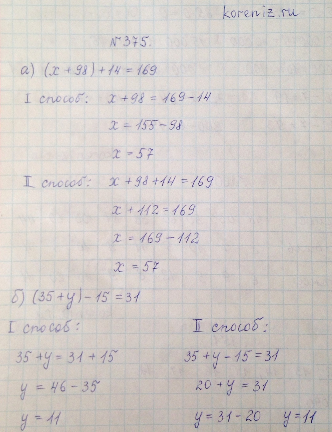 Способ 1): 35 + y = 31 + 15