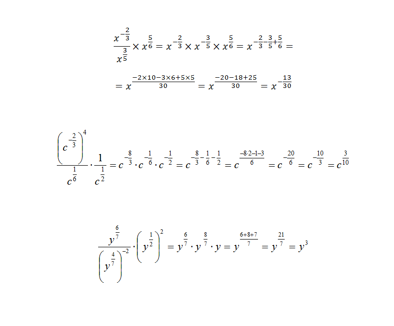 Главное правило - при умножении чисел с одинаковым основаниями степени складываются, при делении вычитаются