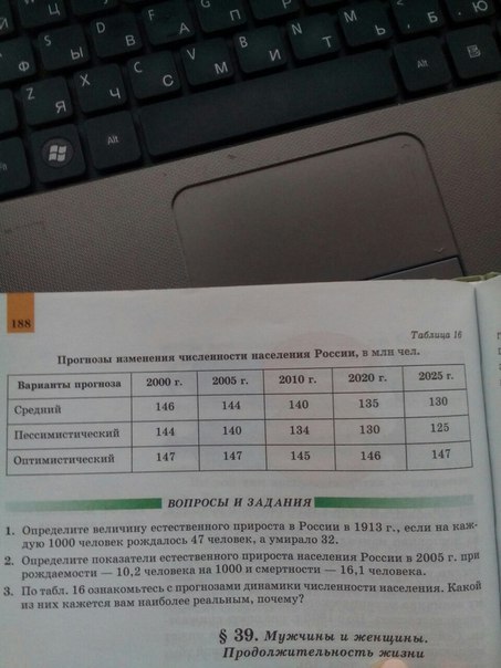 1) ЕП= Р - С, где ЕП - естественный прирост на 1000 человек, Р - рождаемость, С - смертность